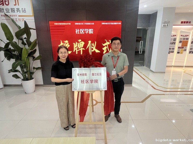 为全面延伸学校社会服务领域,加强服务学习型社会建设、营造终身学习环境,2023年8月25日,继教院走访了西湖街道,洽谈社区教育合作事项并达成合作意向。9月1日,由星空平台app官网、藻江社区、天福志愿服务中心三方共建的“社区学院”挂牌仪式在藻江社区举行。藻江社区党委书记谢孟、副书记任莉、社区老年服务活动站站长刘玉清、盐城高新区社区党委副书记蔡顺桃,天福聚家志愿服务中心蒋春主任、常州纺院继教院、人文学院、创意学院相关负责人和教师参加了活动。